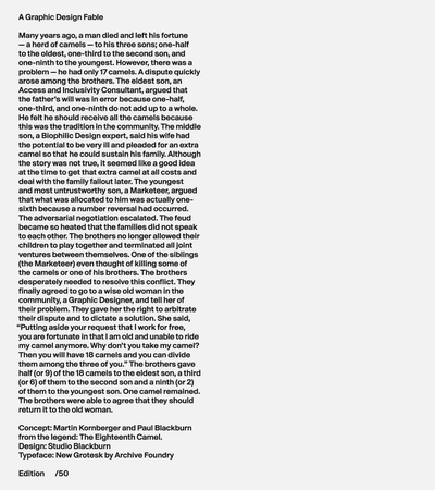 The concept was researched and presented by Martin Kornberger to Paul Blackburn, and subsequently stolen by Paul.