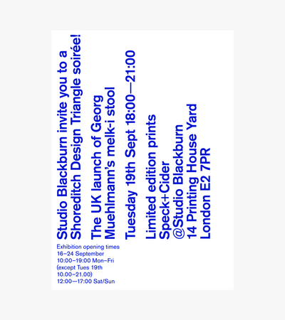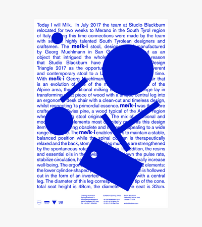 As part of Shoreditch design triangle 2017, Studio Blackburn presented the inaugural UK reveal of the ‘red dot design award’ winning Melk-i stool. We were also tasked with creating a website and marketing items.
