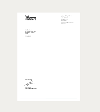 We created an identity that has the railway at its core and utilises a unique 4.5/5.5 grid system (based on the wordmark) that can be applied across all applications. The distinct purple and green colour palette gives them a memorable look and feel whilst allowing the brand to remain serious and sophisticated.