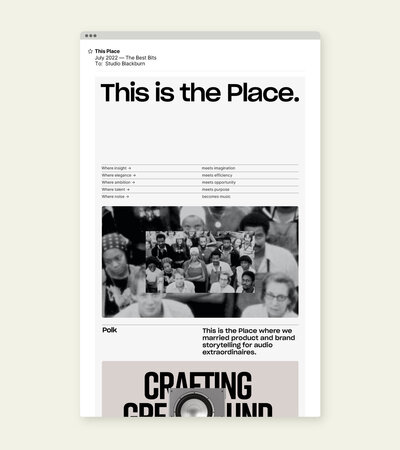 We delivered a refreshed articulation of the brand strategy, a new visual identity and guidelines. Working harmoniously with the This Place internal design teams, we supplied assets and direction to enable the launch of the new website.