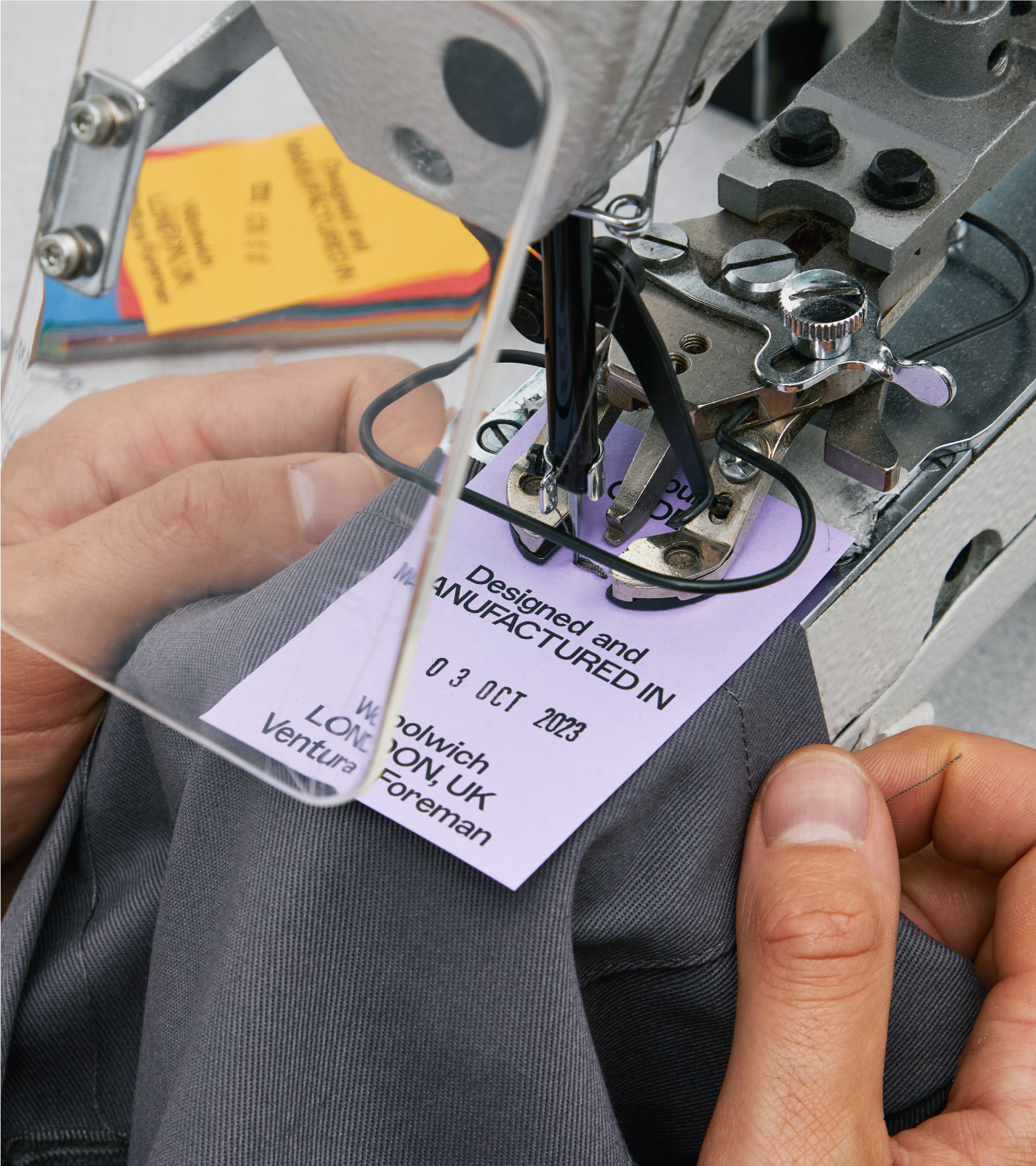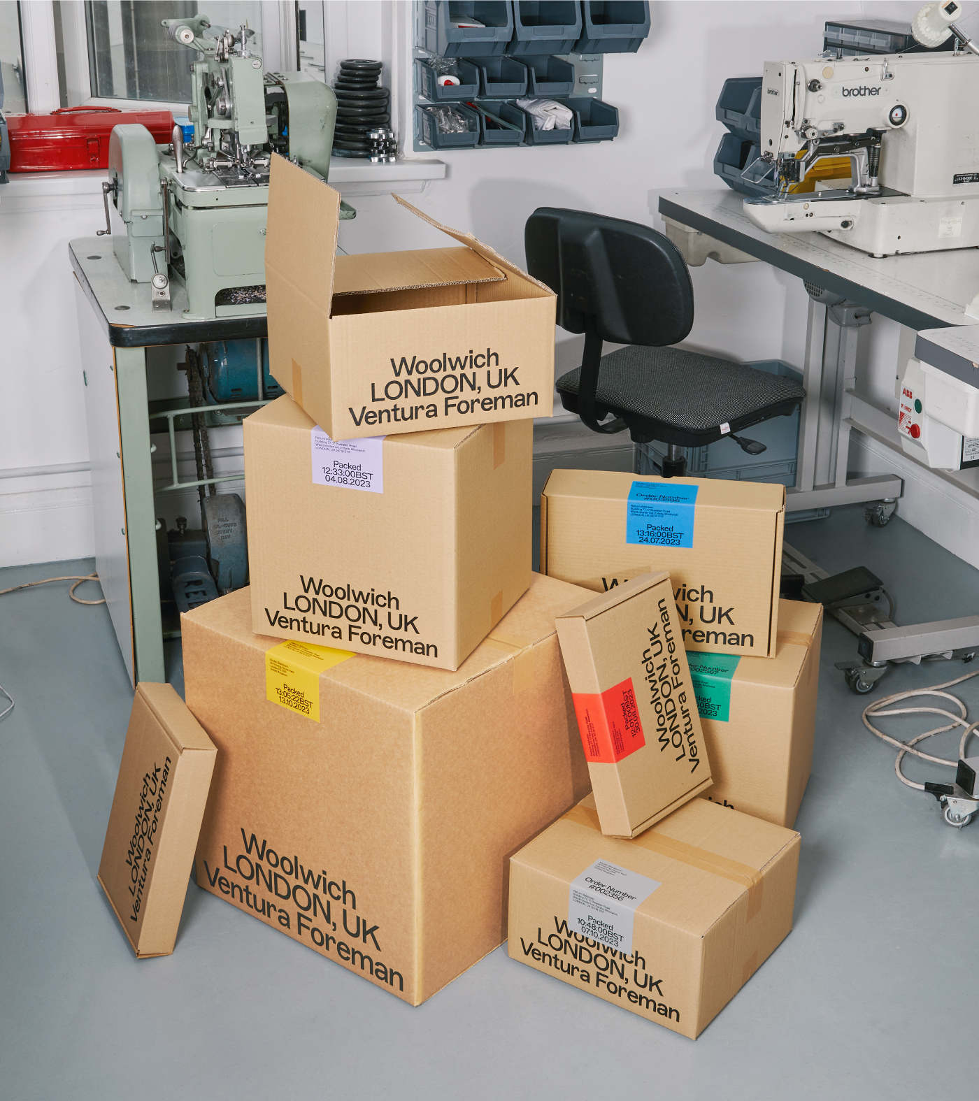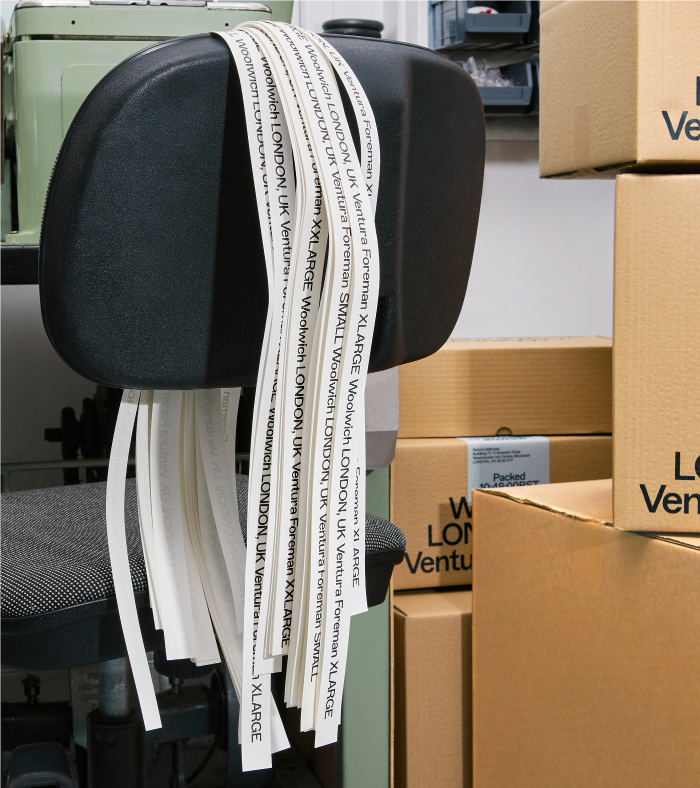 This feeling of ‘a little bit wrong’ was applied to everything, from the typographic system for the logo to the way we attach a label. It even aided us with the choice of typeface, ABC Marfa Medium, designed by Dinamo® which was created as a sturdy, utilitarian typeface designed for a high-speed era with no time to lose, and has subtle quirks that felt wrong—but so right—for Ventura Foreman.