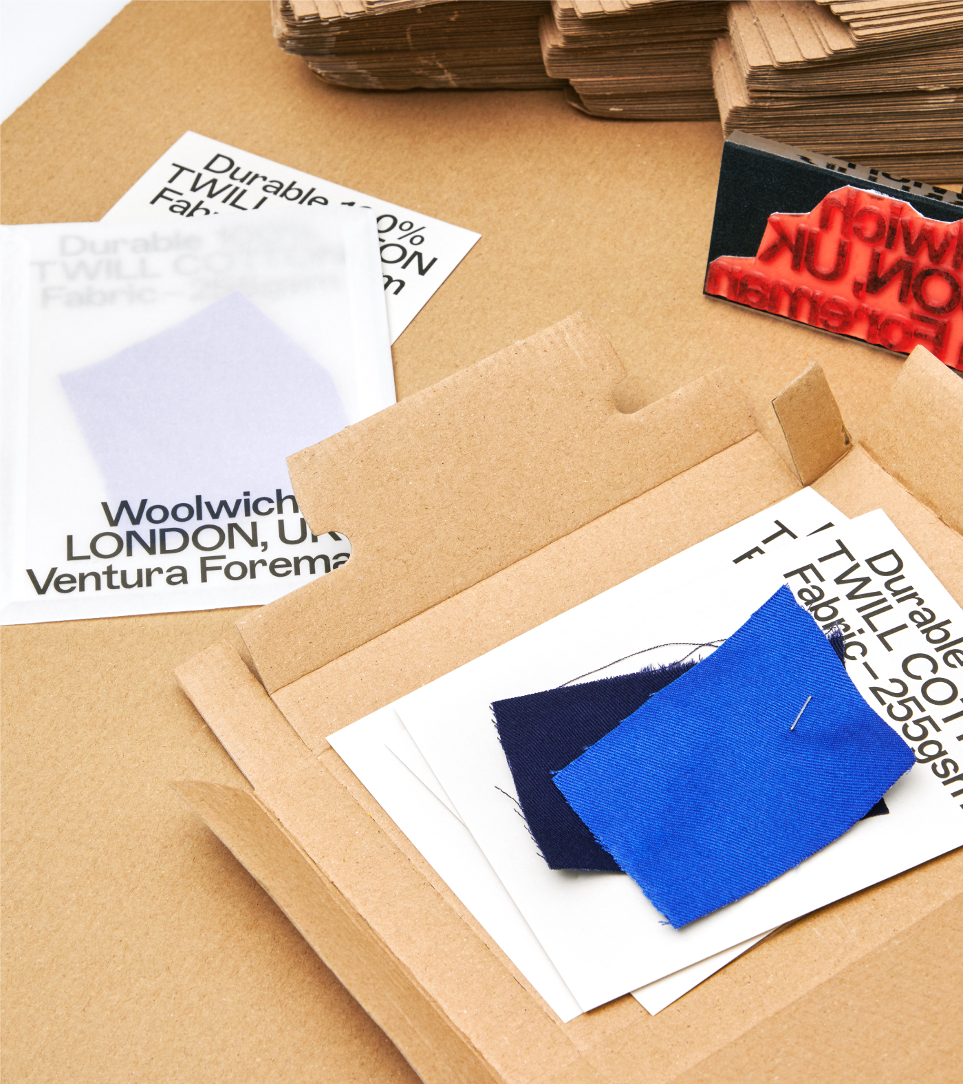 Unconventionally the brand identity doesn’t really have a colour palette, it uses paper stocks and colours chosen to pair with the clothes and based on the range of fabrics available. Hits of colour have been added as and when needed for print collateral, postage labels and other branded assets.
